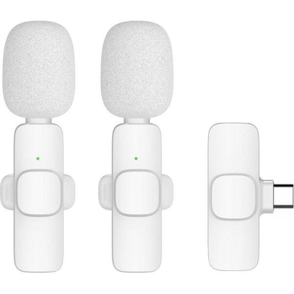 Wireless lavalier microphone Type C double with long hair (2 in set) K1 white
